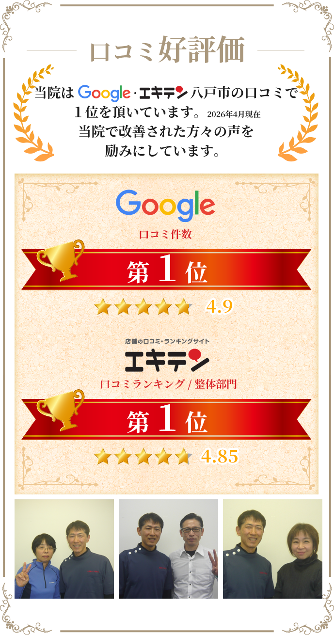 初めて来院される方はどんな施術をするか不安があると思いますが、ほとんどの方が改善されています。