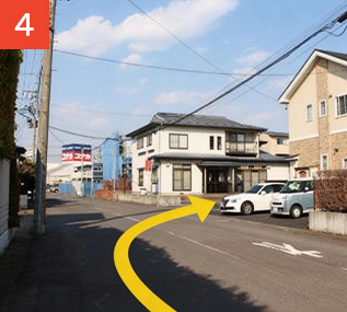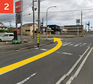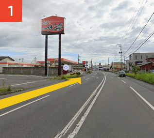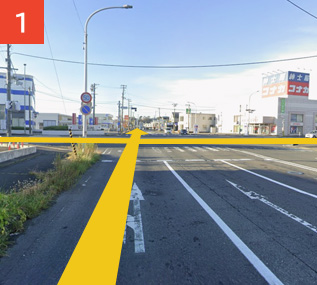 八戸市民病院方面から45号線方面へ進み、一心亭を通り過ぎます。