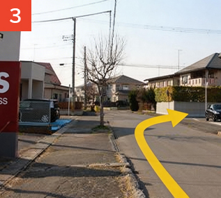 交差点を曲がったら、すぐ右の道路を曲がります。